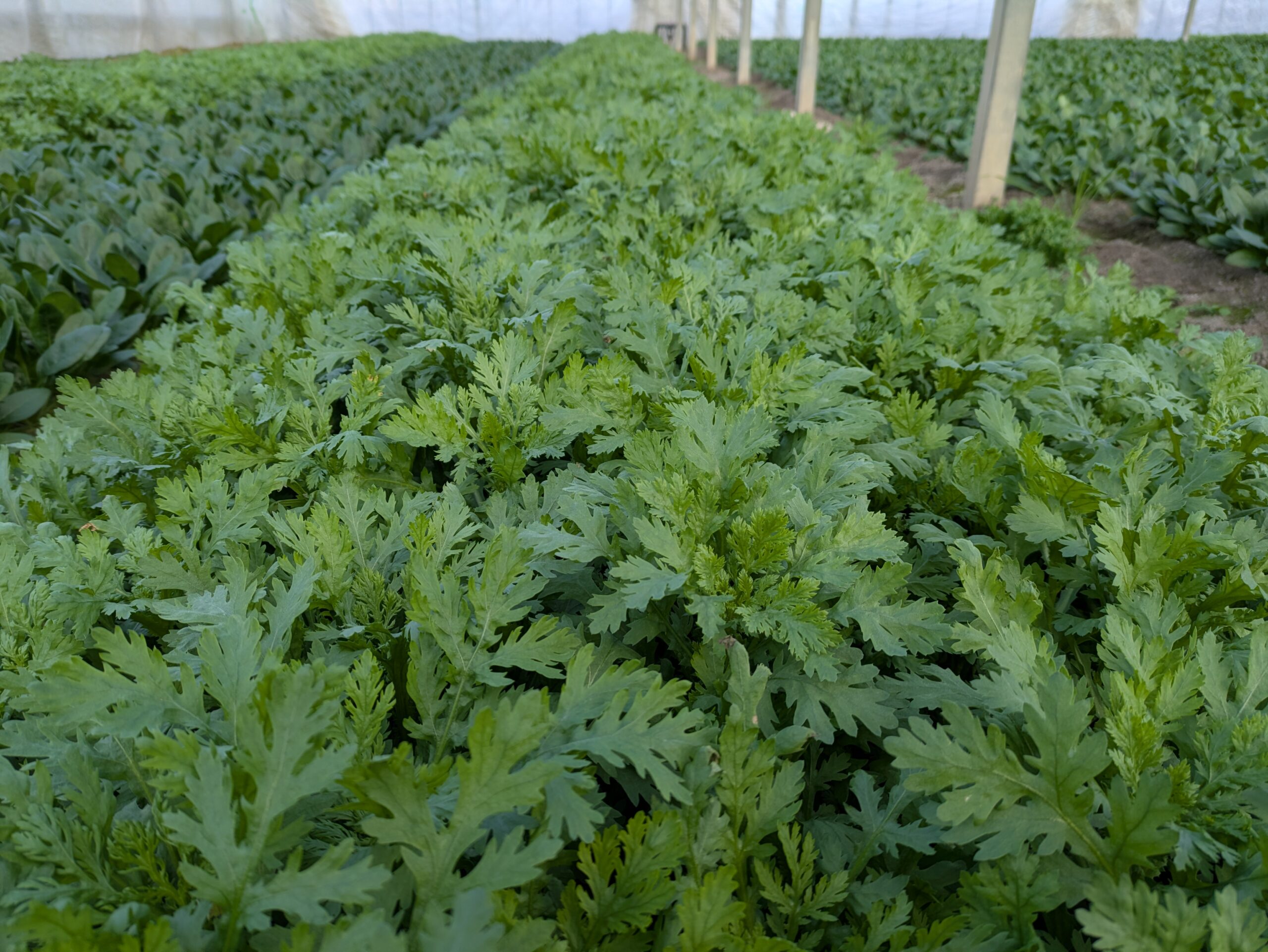 そんな中でも今一番取れているはっぱ野菜は 「春菊」 です!